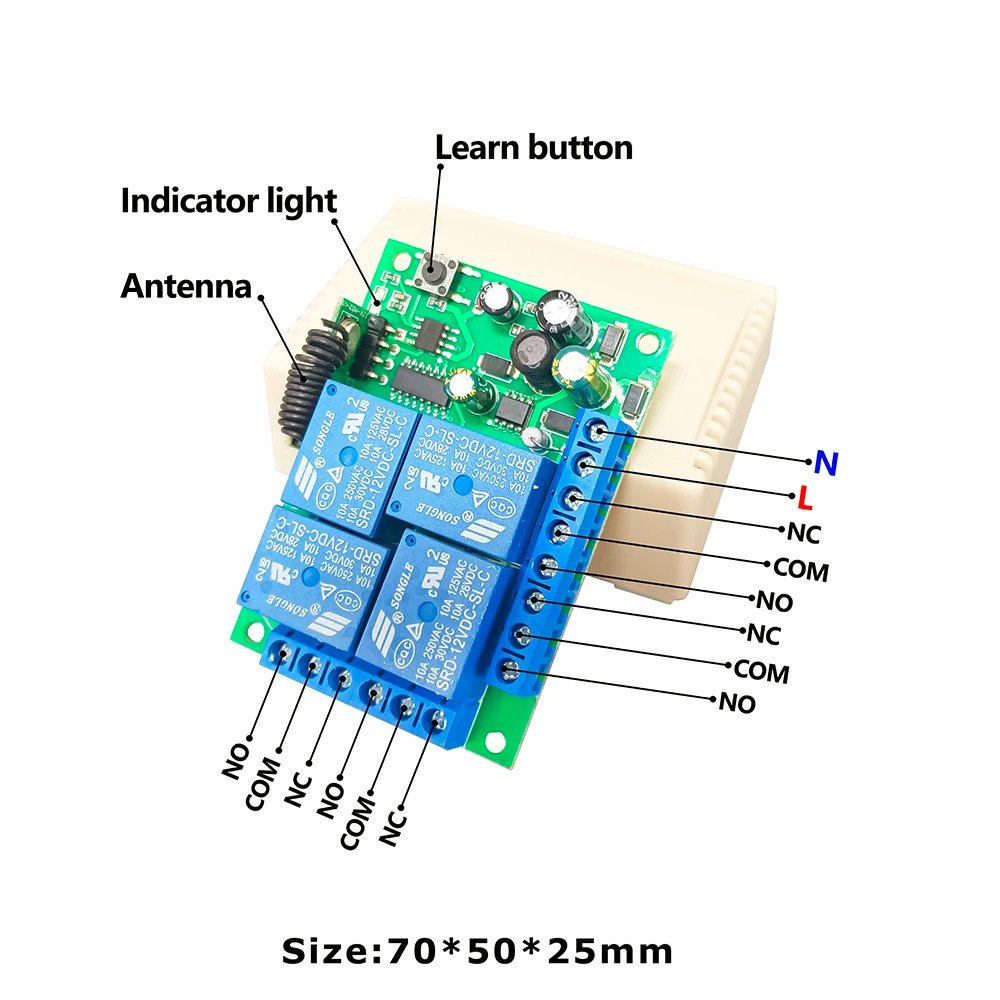 Wireless RF Remote Control With Receiver Module 433mhz 4CH Relay HFY-KG04C